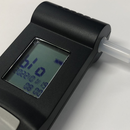 息を吹きかけるだけで、体にどれくらいアルコールが残っているか測定します。